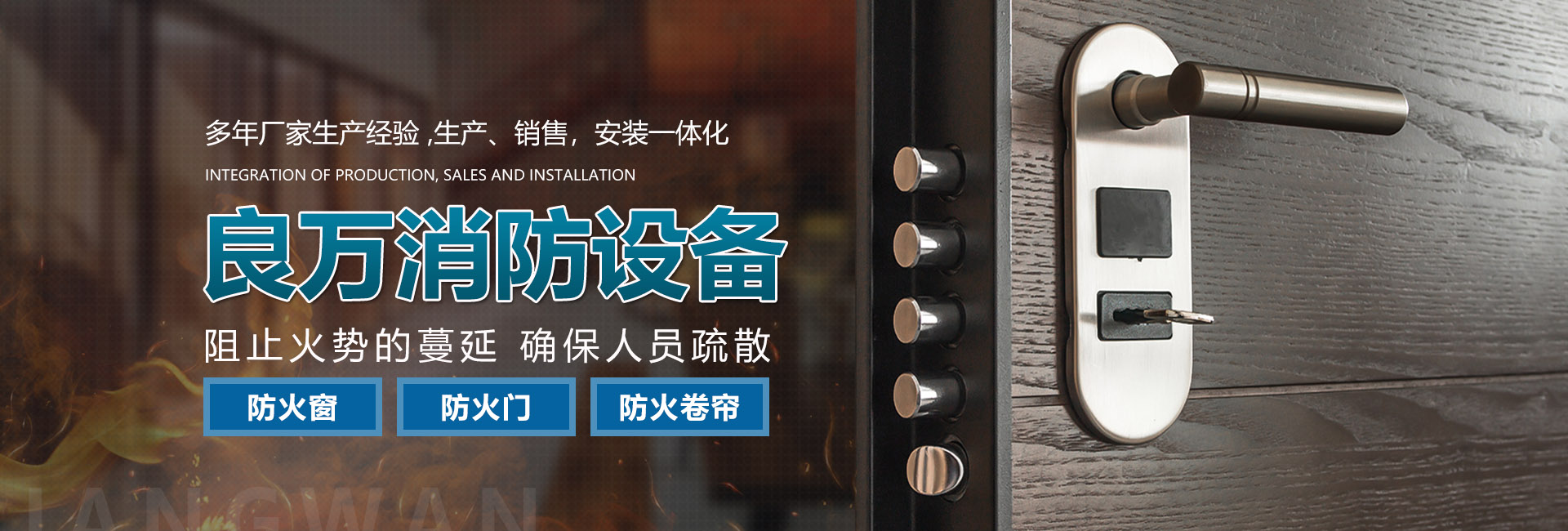 合肥良萬消防設(shè)備有限公司位于合肥市包河工業(yè)園,生產(chǎn)銷售安裝:防火門、防火卷簾門、防火窗等消防安全產(chǎn)品。公司具有研發(fā)、設(shè)計(jì)、生產(chǎn)、銷售、及安裝服務(wù)的綜合配套能力。合肥良萬消防設(shè)備有限公司技術(shù)力量強(qiáng),設(shè)備齊全,產(chǎn)品不斷創(chuàng)新,以信譽(yù)立業(yè),客戶滿意是我們永無止境的追求。我們?cè)诒WC產(chǎn)品質(zhì)量的同時(shí),也十分注重售后服務(wù),保證消防安全產(chǎn)品的正常運(yùn)行。公司始終堅(jiān)持誠信為本的企業(yè)宗旨,真誠希望與社會(huì)各界新老客戶精誠合作,良萬愿與您攜手共創(chuàng)輝煌!